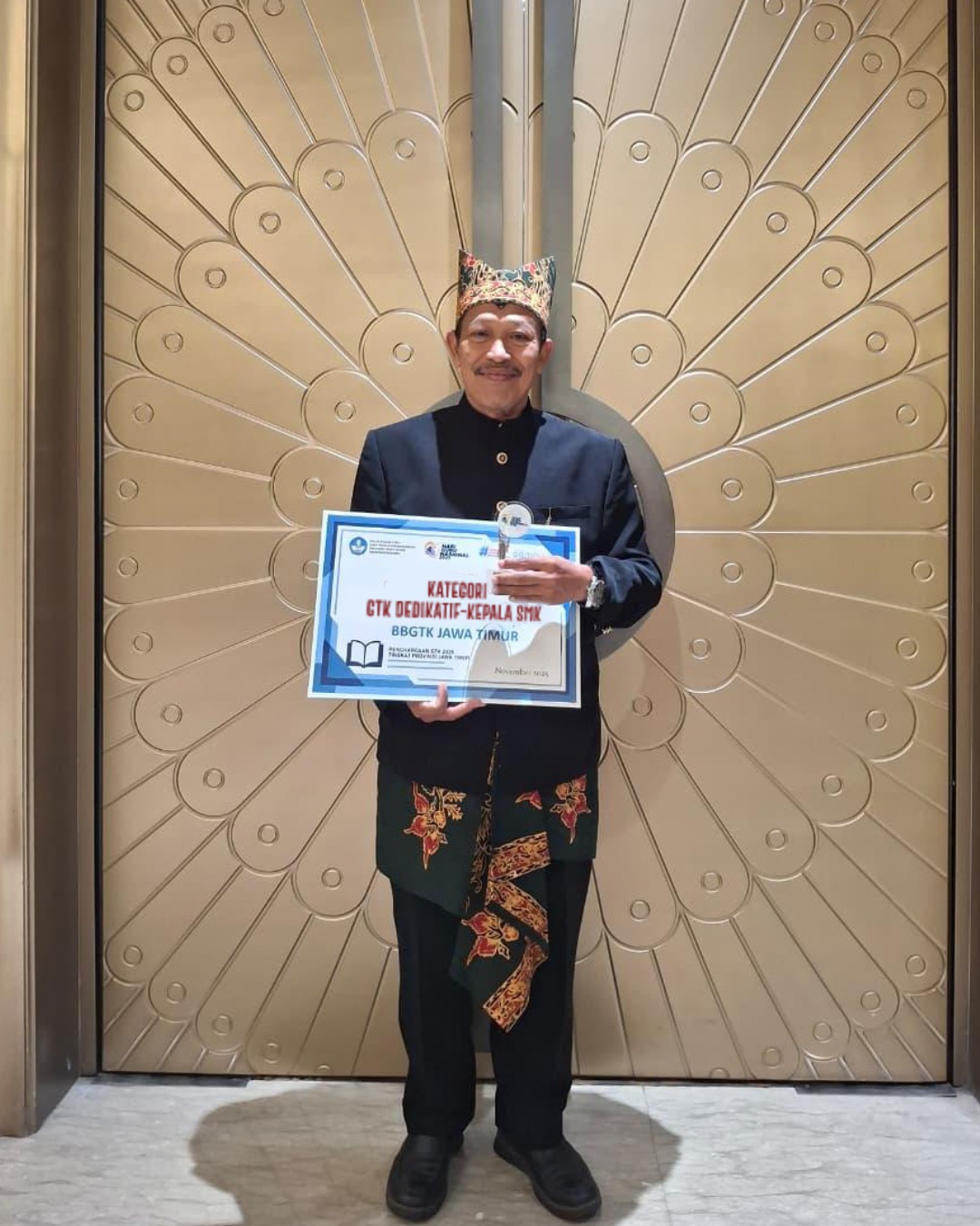 Muncar, 07 November 2025 — Kabar membanggakan datang dari SMK Negeri Darul Ulum Muncar. Kepala sekolah, (sebutkan nama Kepala Sekolah) berhasil meraih Terbaik 3 Tingkat Provinsi Jawa Timur dalam ajang Apresiasi Guru dan Tenaga Kependidikan (GTK) Jawa Timur Tahun 2025. Penghargaan tersebut diberikan dalam rangka memperingati Hari Guru Nasional Tahun 2025, dengan kategori “Guru Dedikatif, Penggerak Inovasi dan Teladan Pendidikan Berkualitas” pada jenjang GTK Dedikatif – Kepala SMA Jawa Timur.