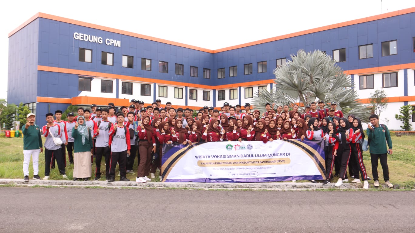 Banyuwangi, 25 Oktober 2025 — Dalam rangka memperluas wawasan peserta didik mengenai dunia pelatihan vokasi dan peningkatan produktivitas di dunia kerja, SMK Negeri Darul Ulum Muncar melaksanakan kegiatan kunjungan industri yang dikemas dalam bentuk Wisata Vokasi di Balai Pelatihan Vokasi dan Produktivitas (BPVP) Banyuwangi pada hari Sabtu, 25 Oktober 2025.
